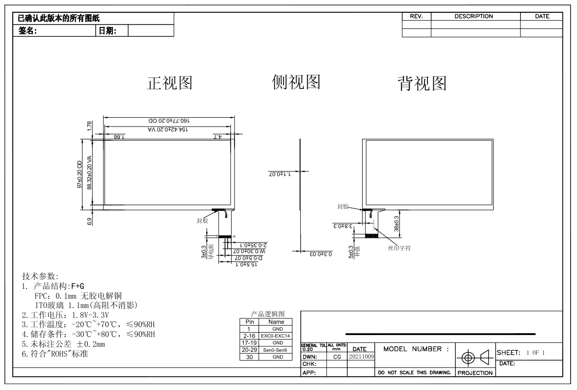 97.00 × 160.77 × 1.10 মিমি (সেন্সর আউটলাইন; সহনশীলতা: ±0.20 মিমি)